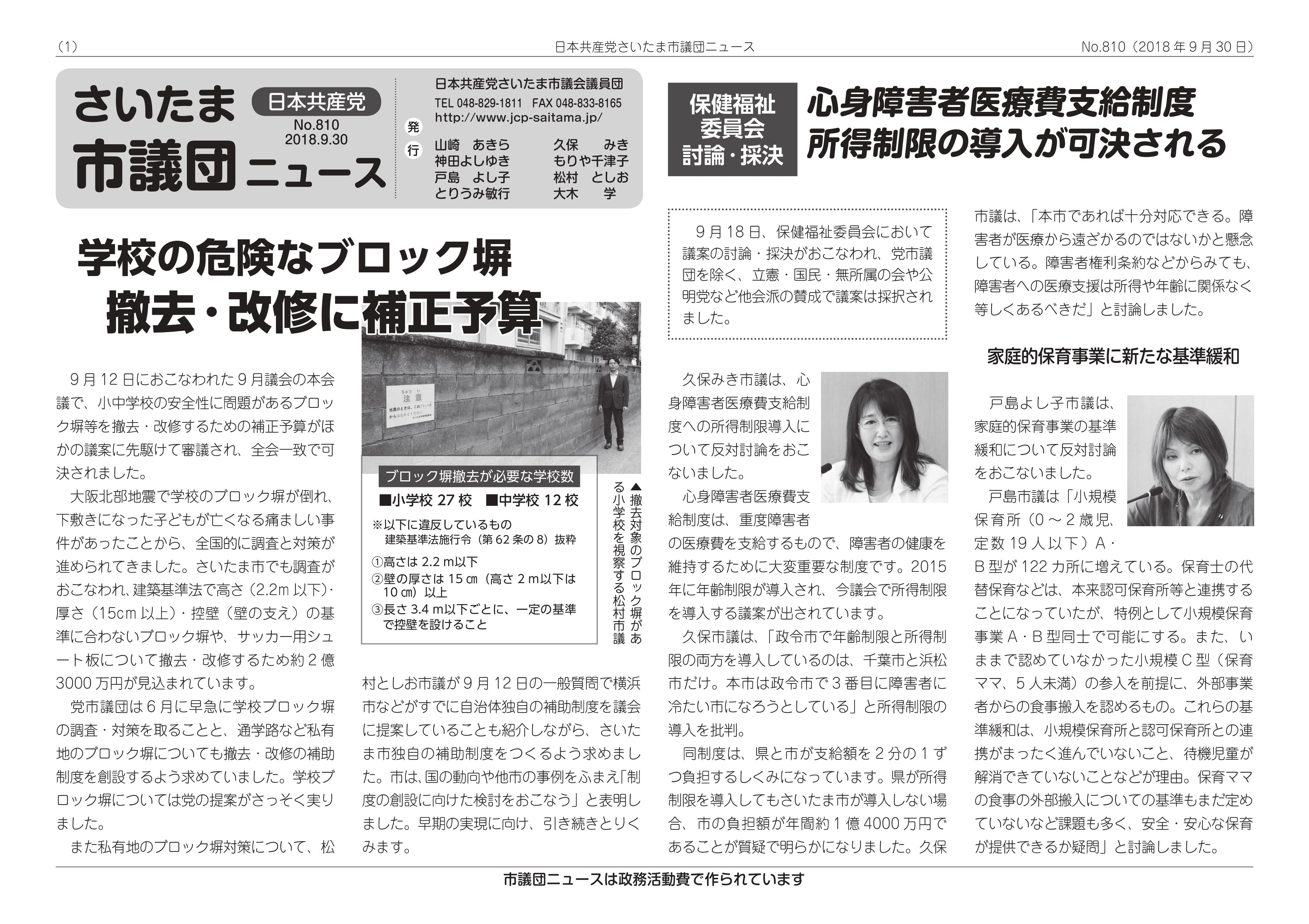 - 2018年12月02日|市議団ニュース|さいたま市議団ニュース 819号 2018.12.2発行