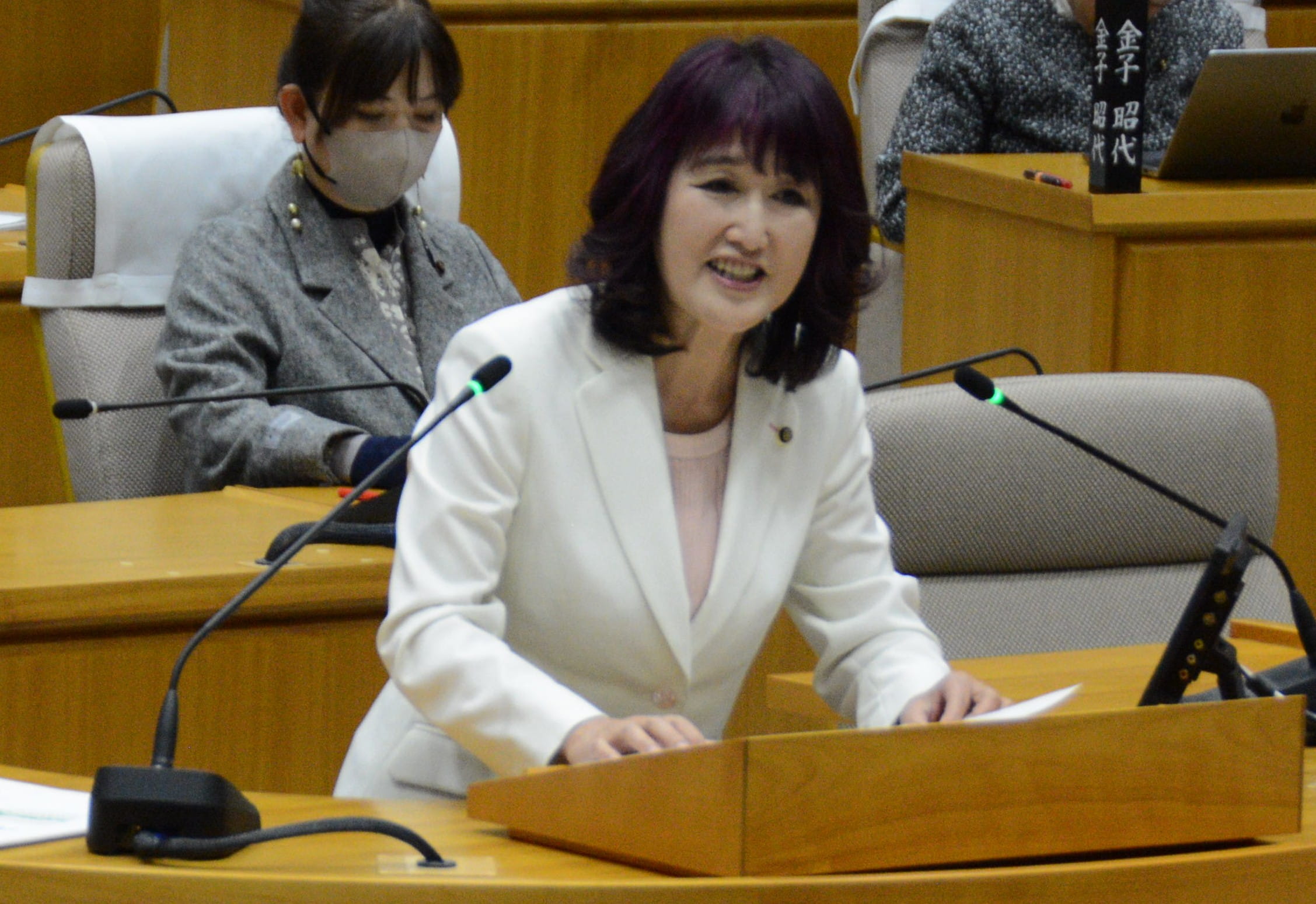 代表質問をおこなう久保みき市議